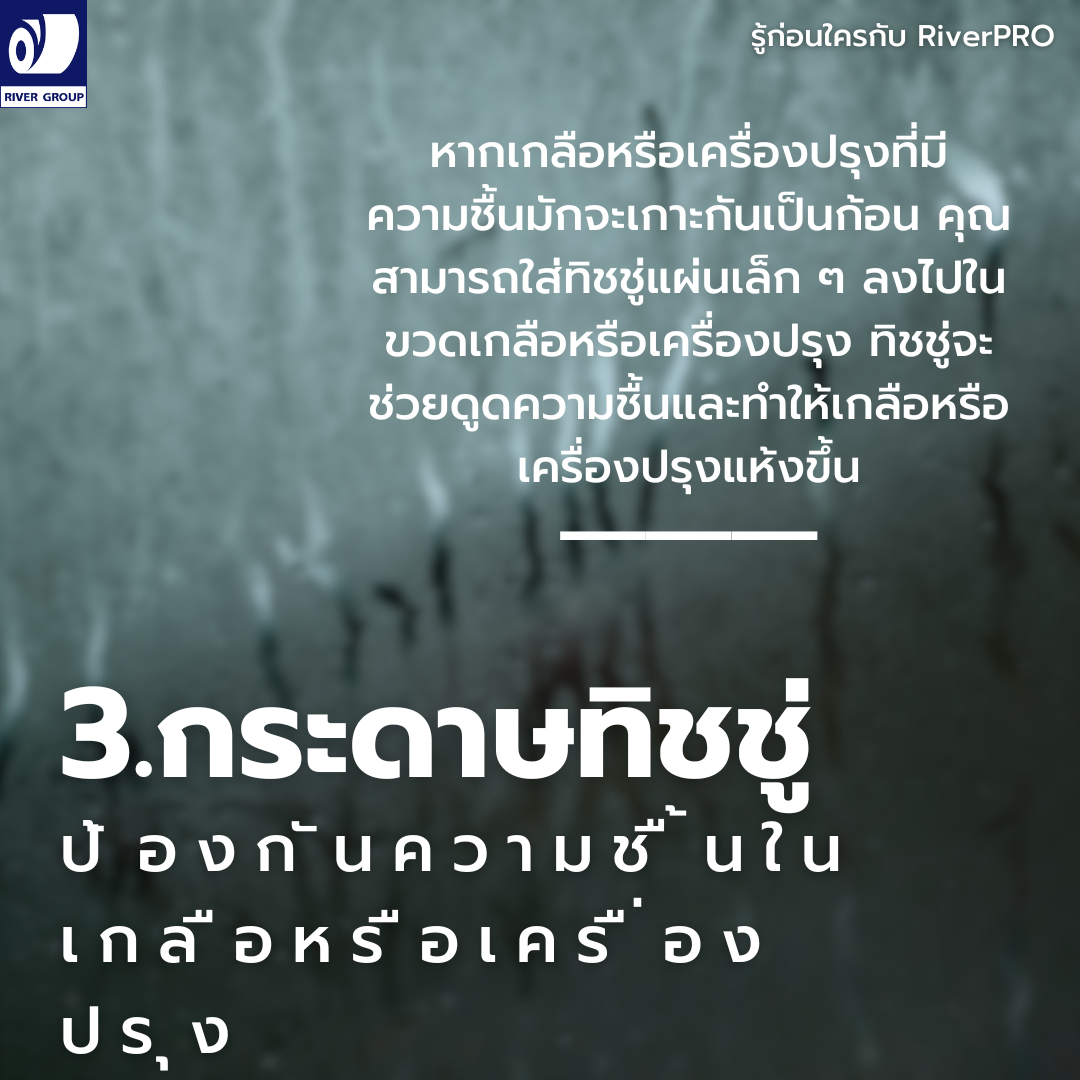 3.กระดาษทิชชู่ ป้องกันความชื้นในเกลือหรือเครื่องปรุง